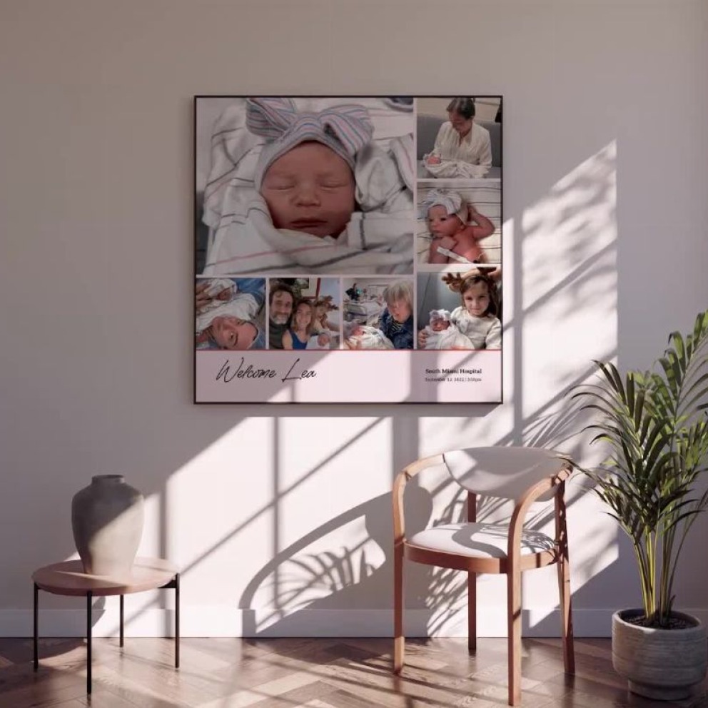 Our Baby Girl Birth Poster - Photo Collage Print is available in the always ideal Square orientation, or it can be fully customized to your liking. Perfect for any space, this work comes in various size options and finishing materials. In fact, your Baby Girl Birth Poster - Photo Collage Print will have a classic, gallery-quality look when you choose from Matte Poster, Metal Frame, Canvas, Wood Print, and more. Don't hesitate! Give your walls the makeover they deserve!