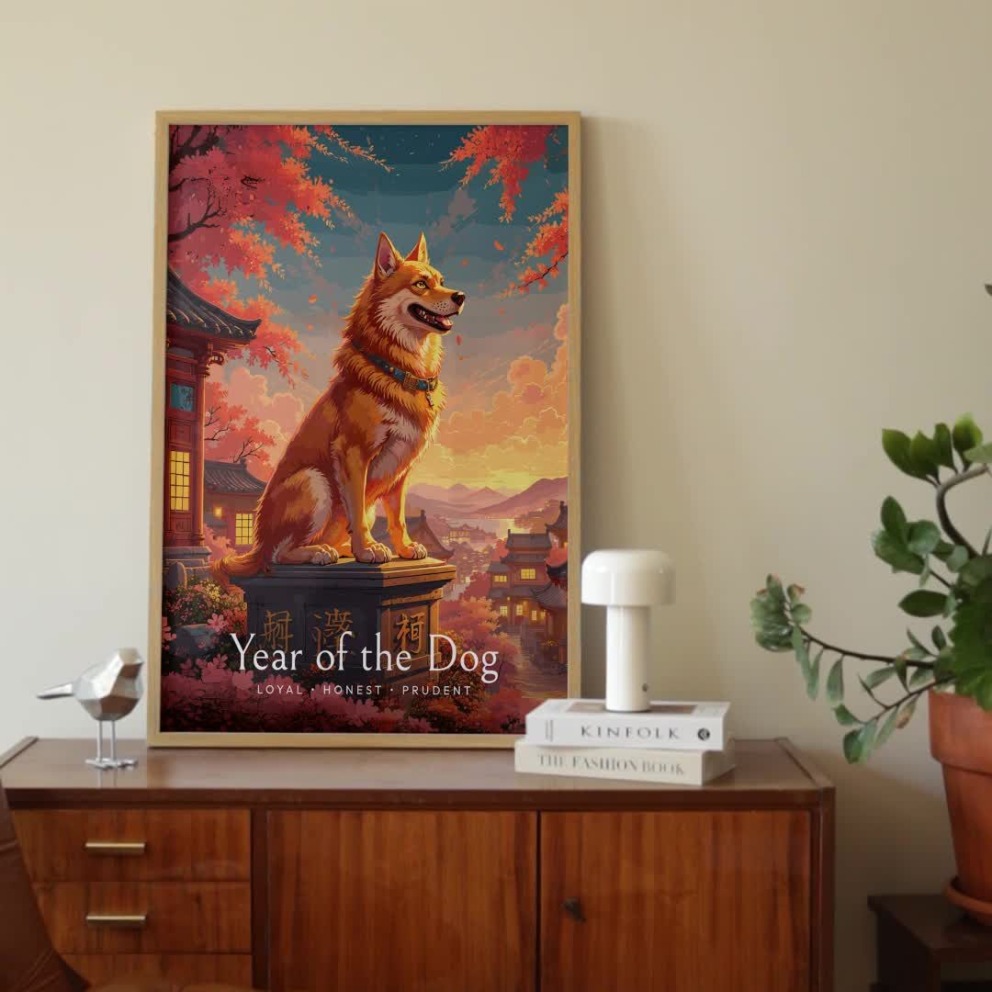 Our Dog in Enchanted Surrealism Print - Custom Chinese Zodiac Poster is available in the always ideal Portrait orientation, or it can be fully customized to your liking. Perfect for any space, this work comes in various size options and finishing materials. In fact, your Dog in Enchanted Surrealism Print - Custom Chinese Zodiac Poster will have a classic, gallery-quality look when you choose from Matte Poster, Metal Frame, Canvas, Wood Print, and more. Don't hesitate! Give your walls the makeover they deserve!
