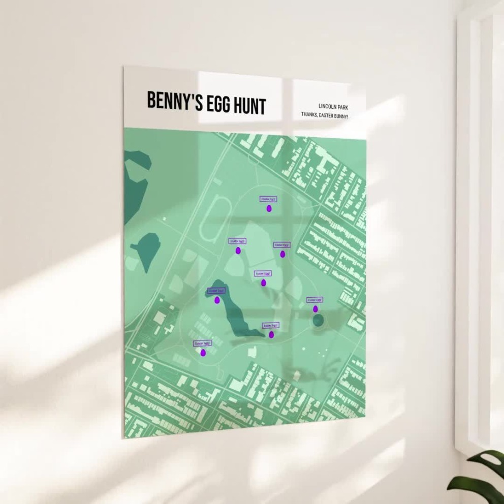 Our Easter Egg Hunt Poster - Street Map is available in the always ideal Portrait orientation, or it can be fully customized to your liking. Perfect for any space, this work comes in various size options and finishing materials. In fact, your Easter Egg Hunt Poster - Street Map will have a classic, gallery-quality look when you choose from Matte Poster, Metal Frame, Canvas, Wood Print, and more. Don't hesitate! Give your walls the makeover they deserve!