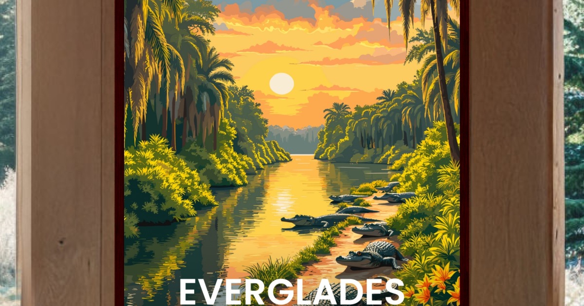 Add a touch of class to your home or office with a Everglades National Park Travel Print - Vintage Travel Art Poster, and transform beautiful artwork into a conversation starter in any space. With a Everglades National Park Travel Print - Vintage Travel Art Poster from our incredible Vintage National Park Travel Art collection, you're sure to turn heads. As part of our best-selling line of Travel Art Prints, this piece is a favorite among Travel enthusiasts and an excellent choice for Gifts for Frequent Travelers or Gifts for Nature & Outdoor Lovers.
