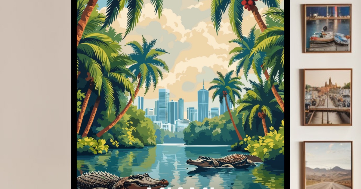 Our Miami Travel Print - Vintage Travel Art Poster is available in the always ideal Portrait orientation, or it can be fully customized to your liking. Perfect for any space, this work comes in various size options and finishing materials. In fact, your Miami Travel Print - Vintage Travel Art Poster will have a classic, gallery-quality look when you choose from Matte Poster, Metal Frame, Canvas, Wood Print, and more. Don't hesitate! Give your walls the makeover they deserve!