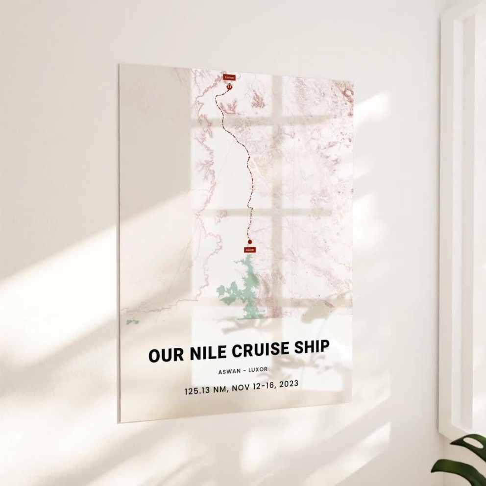 Our Our Nile River Cruise Trip Poster - Hill Shade Map is available in the always ideal Portrait orientation, or it can be fully customized to your liking. Perfect for any space, this work comes in various size options and finishing materials. In fact, your Our Nile River Cruise Trip Poster - Hill Shade Map will have a classic, gallery-quality look when you choose from Matte Poster, Metal Frame, Canvas, Wood Print, and more. Don't hesitate! Give your walls the makeover they deserve!