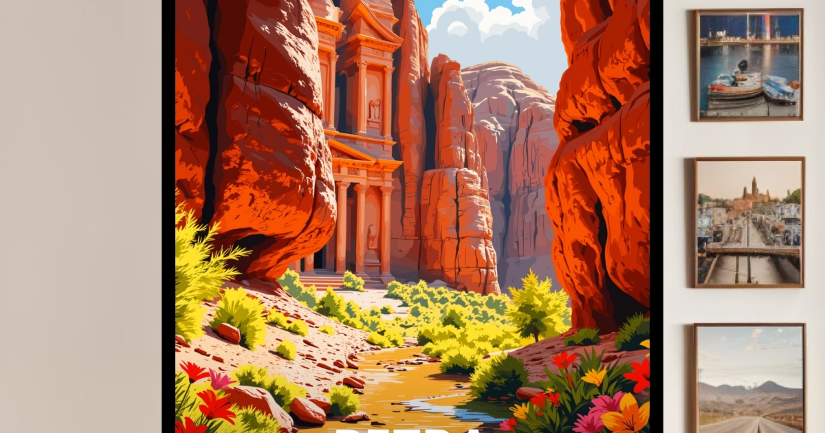 Our Petra Travel Print - Vintage Travel Art Poster is available in the always ideal Portrait orientation, or it can be fully customized to your liking. Perfect for any space, this work comes in various size options and finishing materials. In fact, your Petra Travel Print - Vintage Travel Art Poster will have a classic, gallery-quality look when you choose from Matte Poster, Metal Frame, Canvas, Wood Print, and more. Don't hesitate! Give your walls the makeover they deserve!