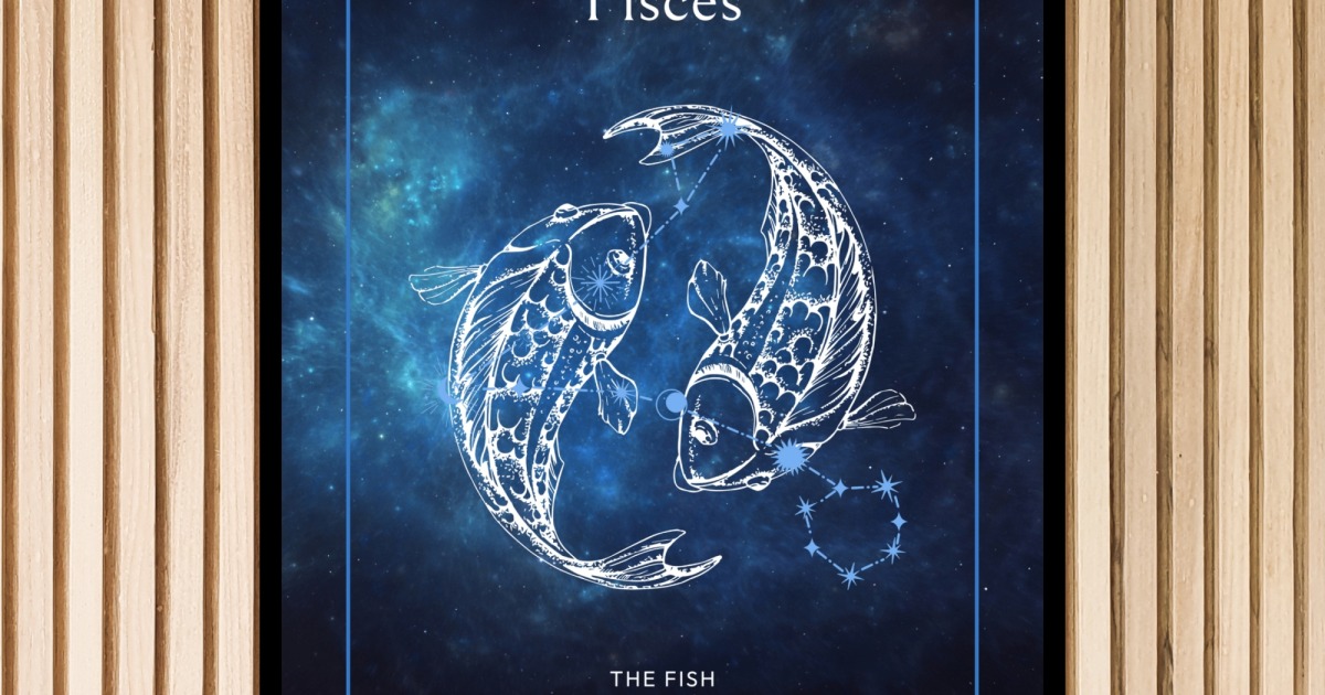 Pisces in Embellished Outline Print - Custom Zodiac Sign Poster