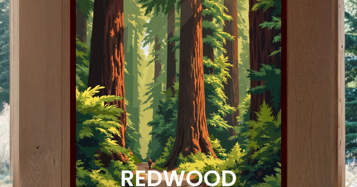 Add a touch of class to your home or office with a Redwood National Park Travel Print - Vintage Travel Art Poster, and transform beautiful artwork into a conversation starter in any space. With a Redwood National Park Travel Print - Vintage Travel Art Poster from our incredible Vintage National Park Travel Art collection, you're sure to turn heads. As part of our best-selling line of Travel Art Prints, this piece is a favorite among Travel enthusiasts and an excellent choice for Gifts for Frequent Travelers or Gifts for Nature & Outdoor Lovers.