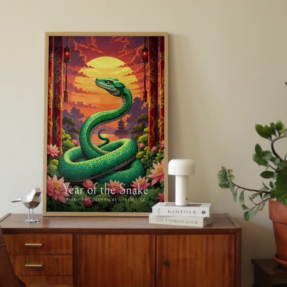 Our Snake in Enchanted Surrealism Print - Custom Chinese Zodiac Poster is available in the always ideal Portrait orientation, or it can be fully customized to your liking. Perfect for any space, this work comes in various size options and finishing materials. In fact, your Snake in Enchanted Surrealism Print - Custom Chinese Zodiac Poster will have a classic, gallery-quality look when you choose from Matte Poster, Metal Frame, Canvas, Wood Print, and more. Don't hesitate! Give your walls the makeover they deserve!