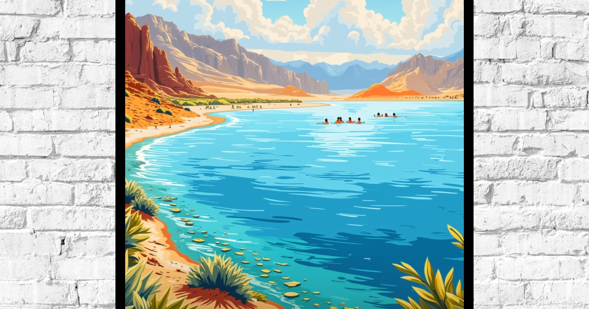 Swim in the Dead Sea Travel Print - Vintage Travel Art Poster