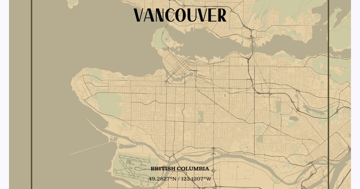 Our Vancouver in Vintage Poster - Street Map is available in the always ideal Landscape orientation, or it can be fully customized to your liking. Perfect for any space, this work comes in various size options and finishing materials. In fact, your Vancouver in Vintage Poster - Street Map will have a classic, gallery-quality look when you choose from Matte Poster, Metal Frame, Canvas, Wood Print, and more. Don't hesitate! Give your walls the makeover they deserve!